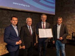 Landtagspräsident Hendrik Hering und Vertreter der kommunalen Spitzenverbände in Rheinland-Pfalz haben in Begleitung der Körber-Stiftung eine Erklärung zum Engagement in der ehrenamtlichen Kommunalpolitik unterzeichnet.