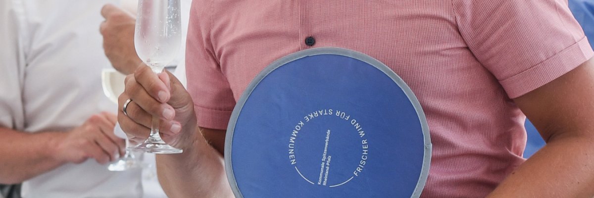 Hilfreiches Utensil war die Wurfscheibe der Kommunalen Spitzenverbände Rheinland-Pfalz, die sich als Fächer mit der Botschaft „Frischer Wind für starke Kommunen“ nutzen ließ. Das Duo That´s Chic aus Mainz entspannte mit Loungemusik den Parlamentarischen Abend.